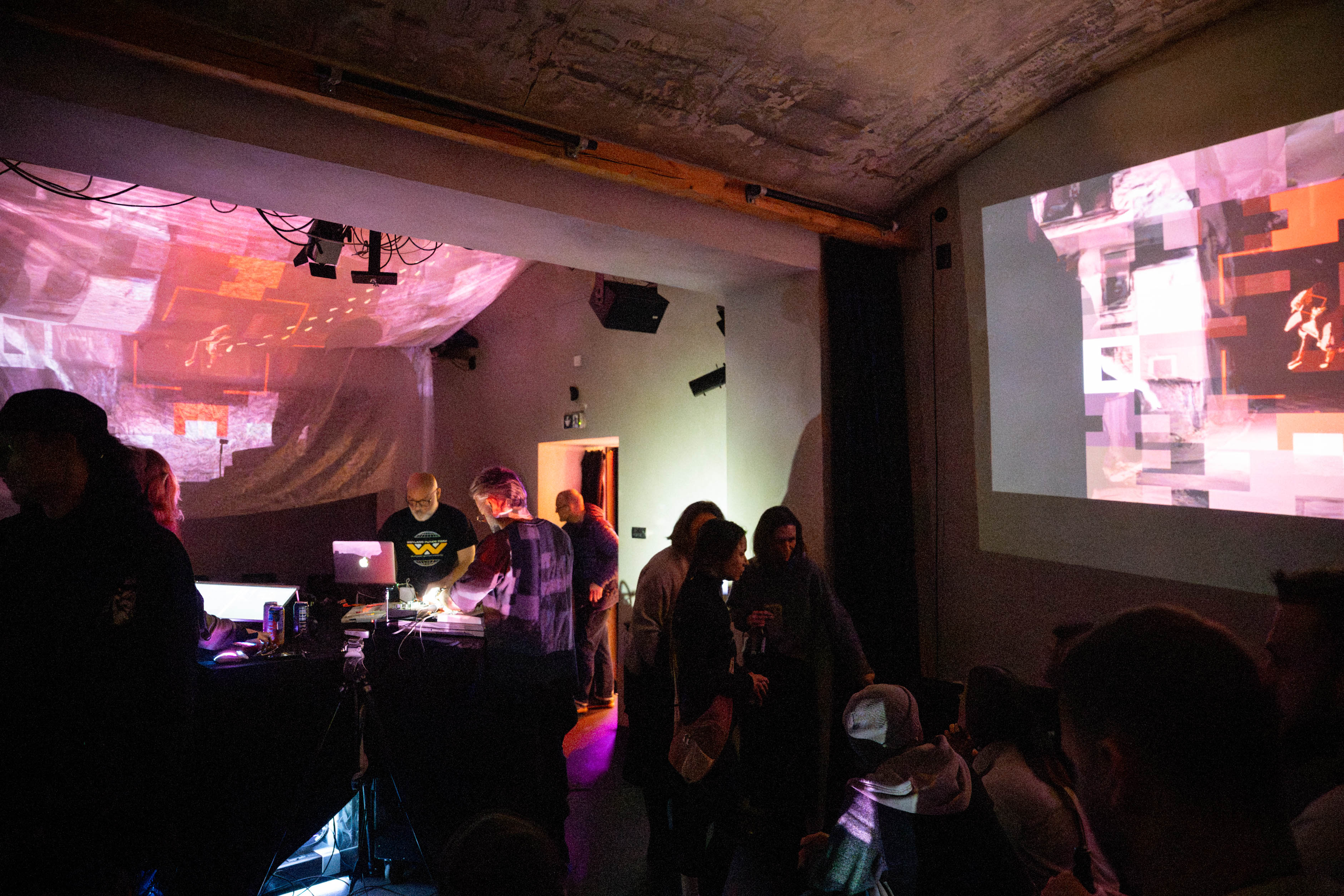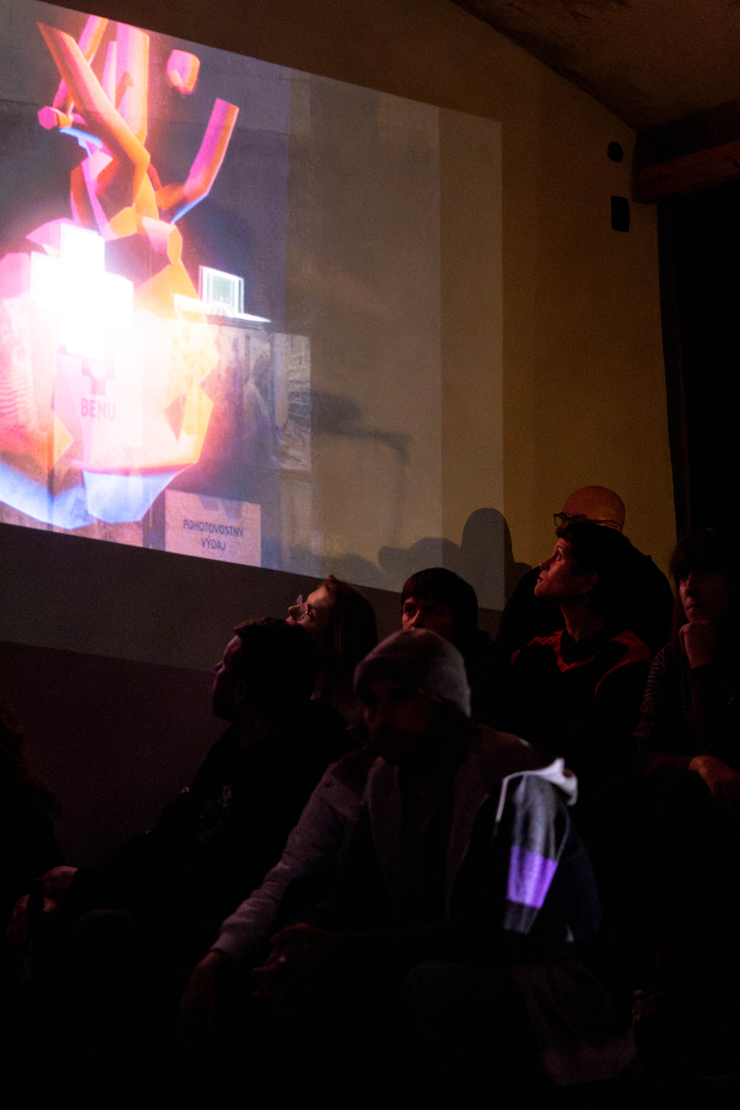 The project has been originally shown in Kosice, Slovakia. It featured at the time an experimental live music / sound art performance with two further collaborators (Boris Sirka (SK) and Dead Janitor (SK)) and a visual performance that integrated live poetry as well as an interactive generative poetry interface by Nyx Guenther (AT/DE). Delaja Fedorco (SK) was largely responsible for conceptual work as well as contributions to the visual and sound aspects.