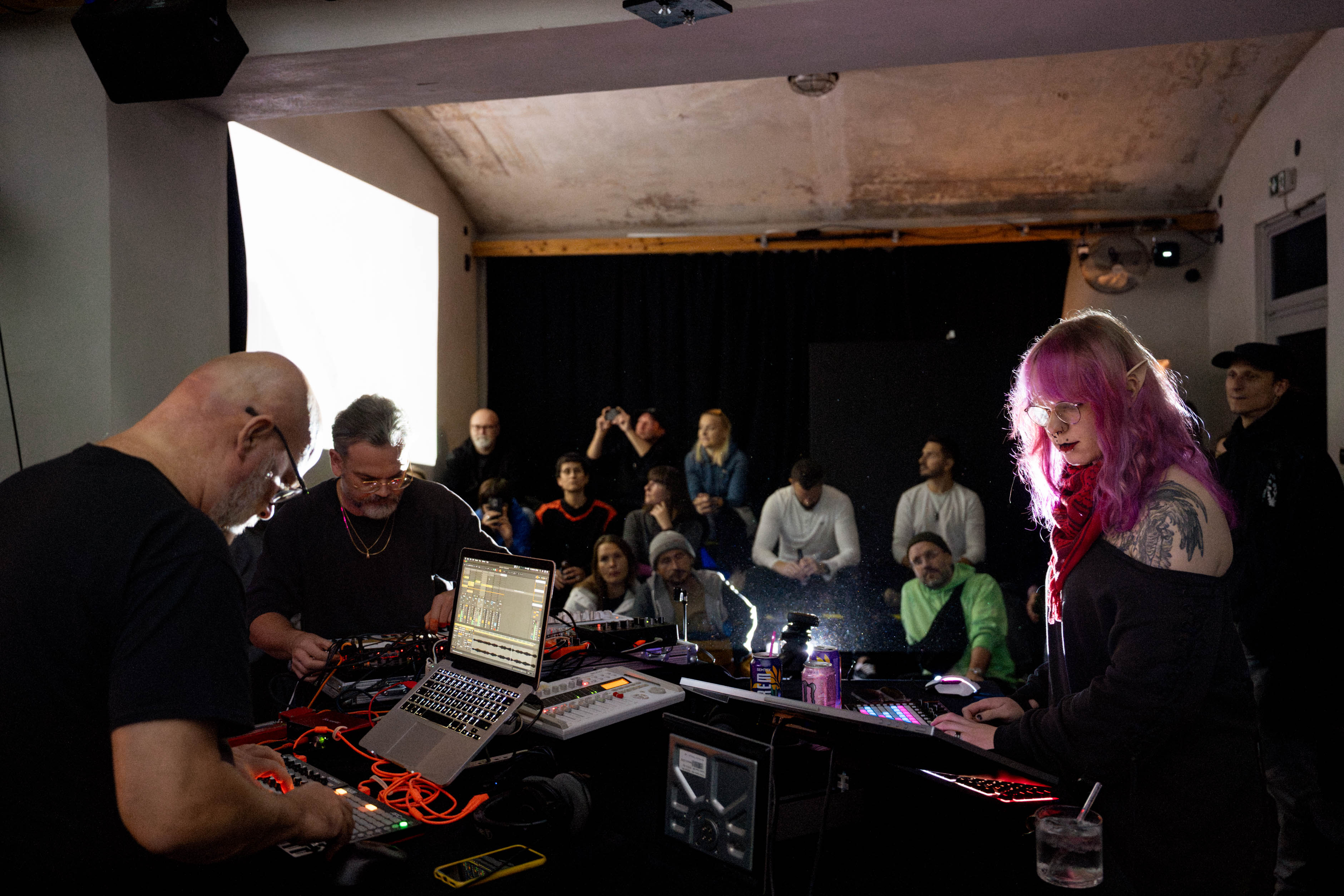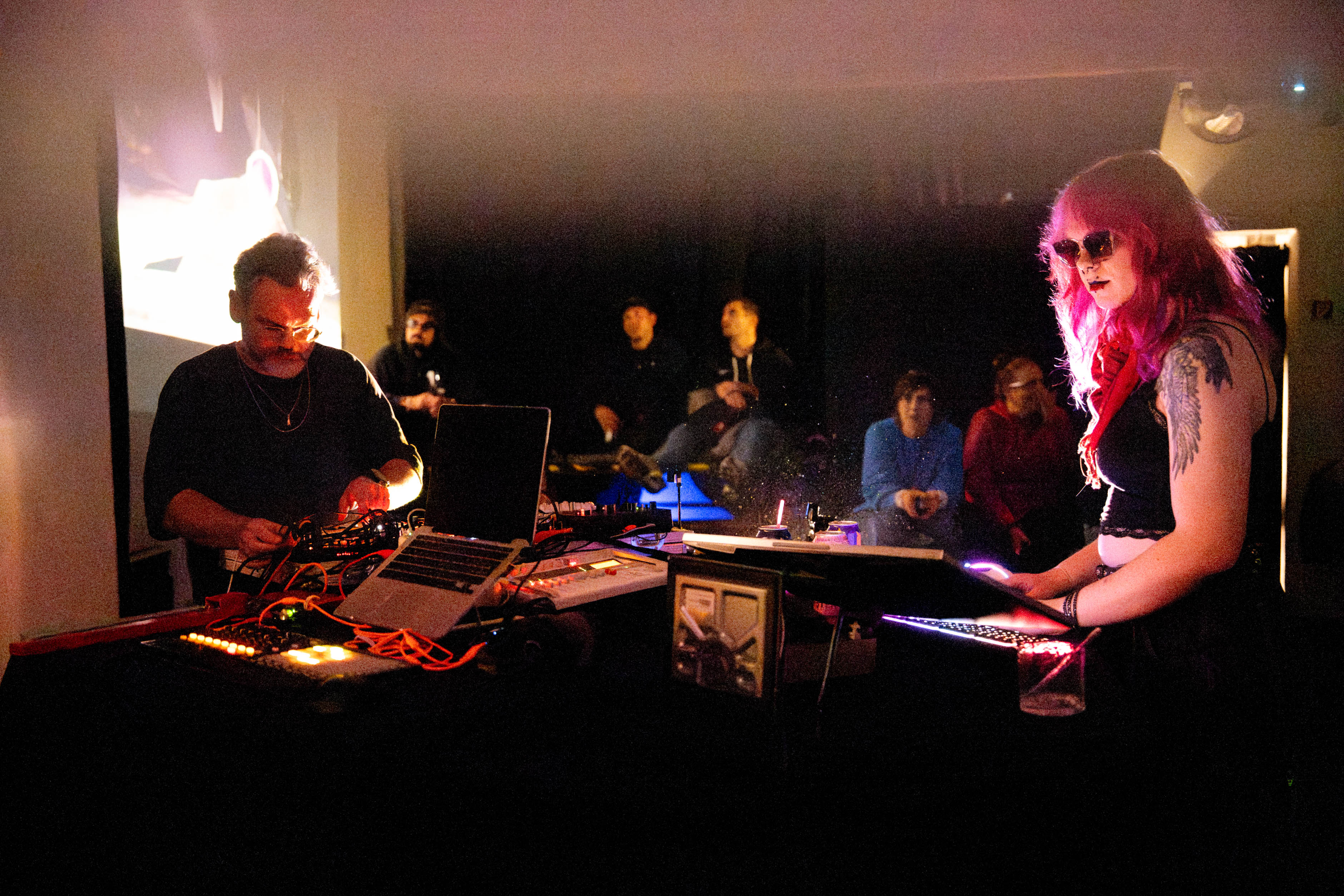 by Delaja Fedorco (SK) and Nyx Guenther (AT/DE). Together we create multimedia art projects and live experiences that question themes such as modern big data technology, digitalization, signals and the fabric of reality. Through the use of multimedia technology like analog sound synthesis, signal bending, live visuals, graphics programming, web-art and poetic and philosophical exploration we want to propose a radical way of viewing and criticizing big data and the creation and breaking of reality through technology.