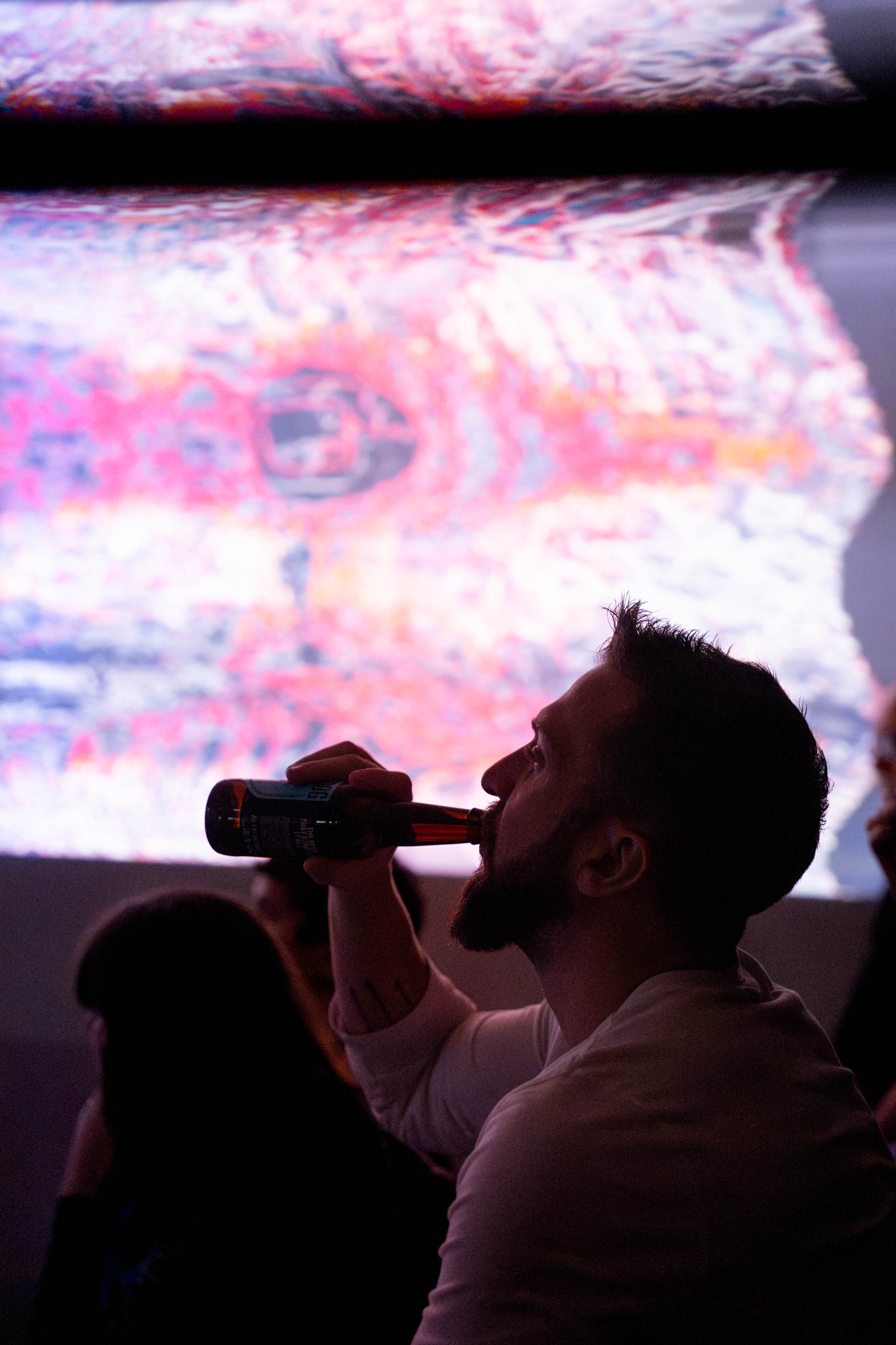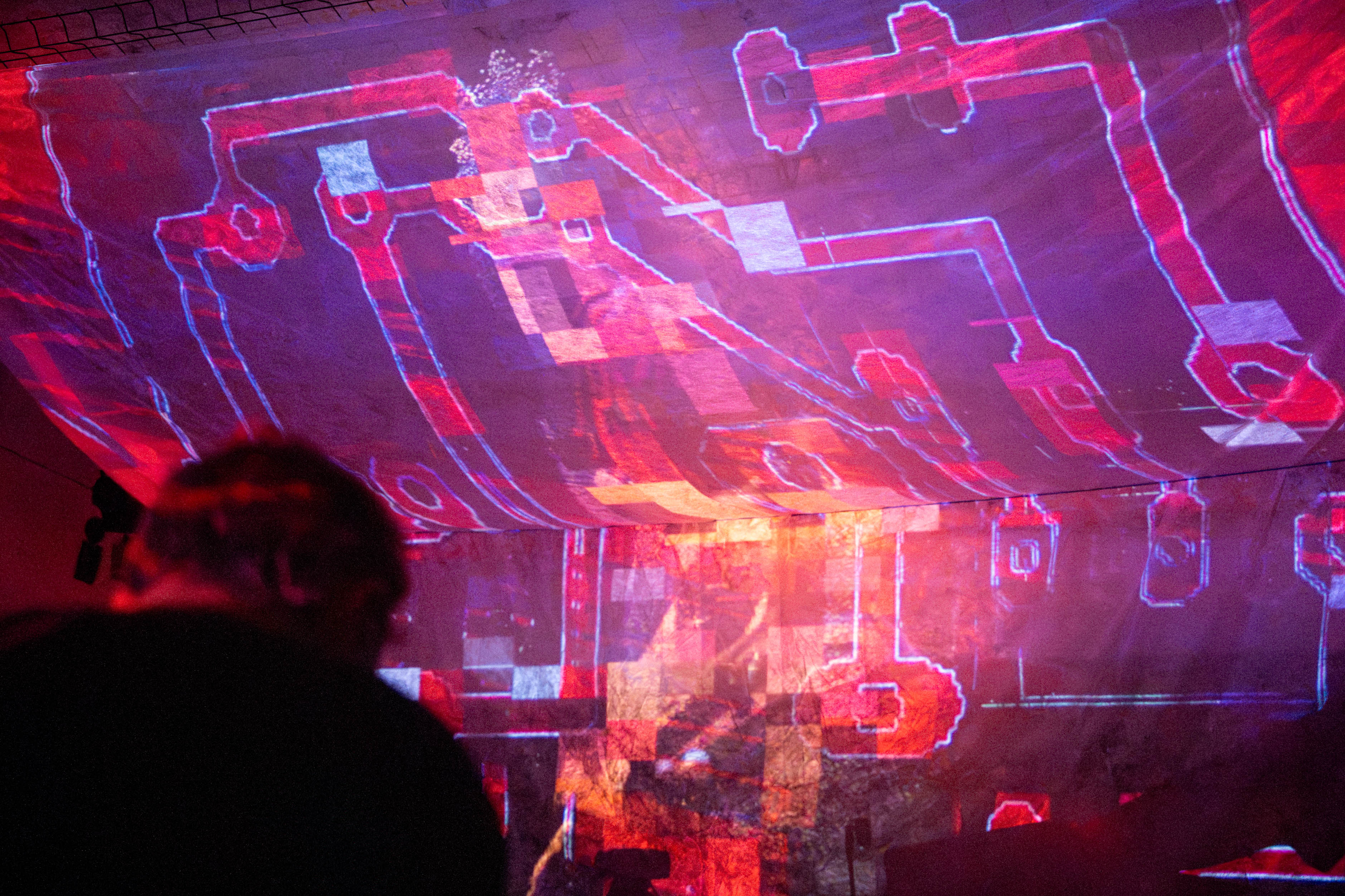 In the final stage of the project we are planning to perform a live experimental sound and visual set. Visuals and sound will be generated using the database that was previously built during the entire project. Data will be made visible and feelable. The installation that has previously facilitated the collaboration and collection of data will at this point turn into a surround stage set, playing sound and visuals from all directions. This final event serves as the climax of REALITY MODULATION ENGINE, and poses a culminating thesis in understanding how far reaching the consequences of humanities modern usage of data and digital signals are in creating and breaking a sense of reality.