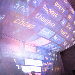The exhibition features multiple interactive displays ("computers") that either show poems from a poem collection that we have written or that allow the viewer to contribute and collaborate by writing and entering their own texts into a database. Other displays ask the viewer to record sound, voice samples or speech which similarly get registered into the database. A visual representation of this database is shown on another display, providing an artistic understanding of how much data can be collected in a short amount of time from even just a handful of inputs. The collected data in this process is a lot more than what would be assumed on first sight. Meta data, like location, timestamp, etc. is recorded just like the message itself. The displaying of this makes it obvious how much more information us users are willing to give up in the utilization of online technology beyond what is visible.